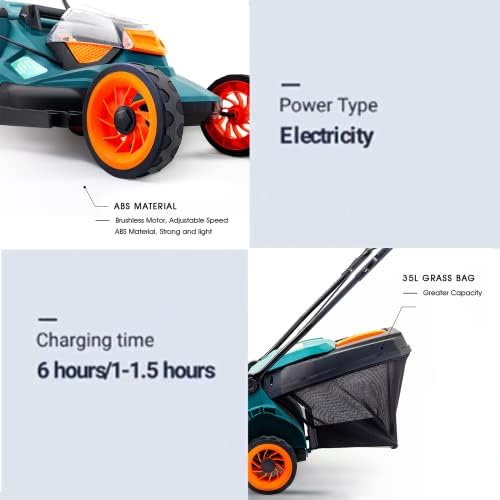 | Feature | [2-in-1]: This 2-in-1 mower lets you bag it up, or mulch your grass back into the ground, it's up to you. 35L grass bag to meet the mowing needs of different lawn.[6 Cutting heights]: Lawn mower has 5 cutting heights, from 30mm to 85mm,to satisfy the needs of different mowing heights.[Lithium ion electric lawn mowers]: Get more done, faster, with electric lawn mowers. This 40V self-propelled lawn mower provides up to 43 minutes of run-time with fully charged 4.0Ah battery (varies bas |