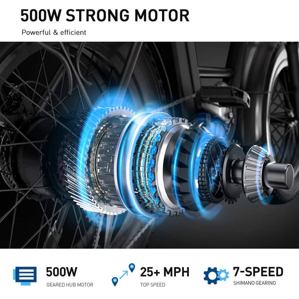 - TIRES:20″ × 4″ Pneumatic Fat Tires